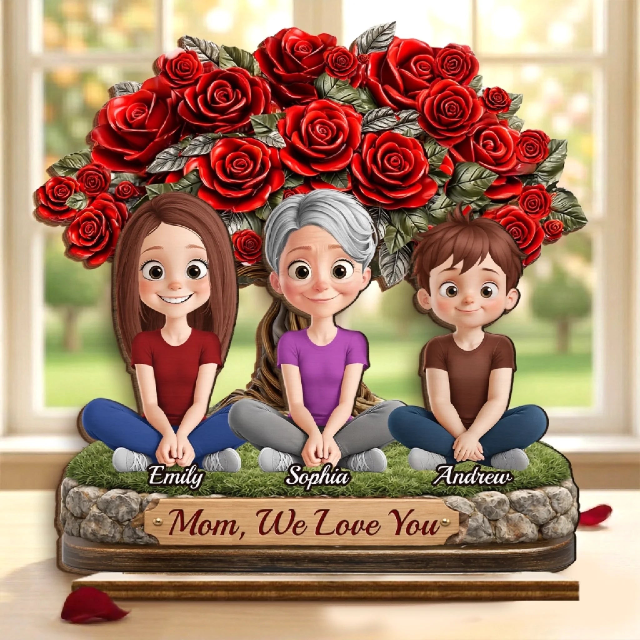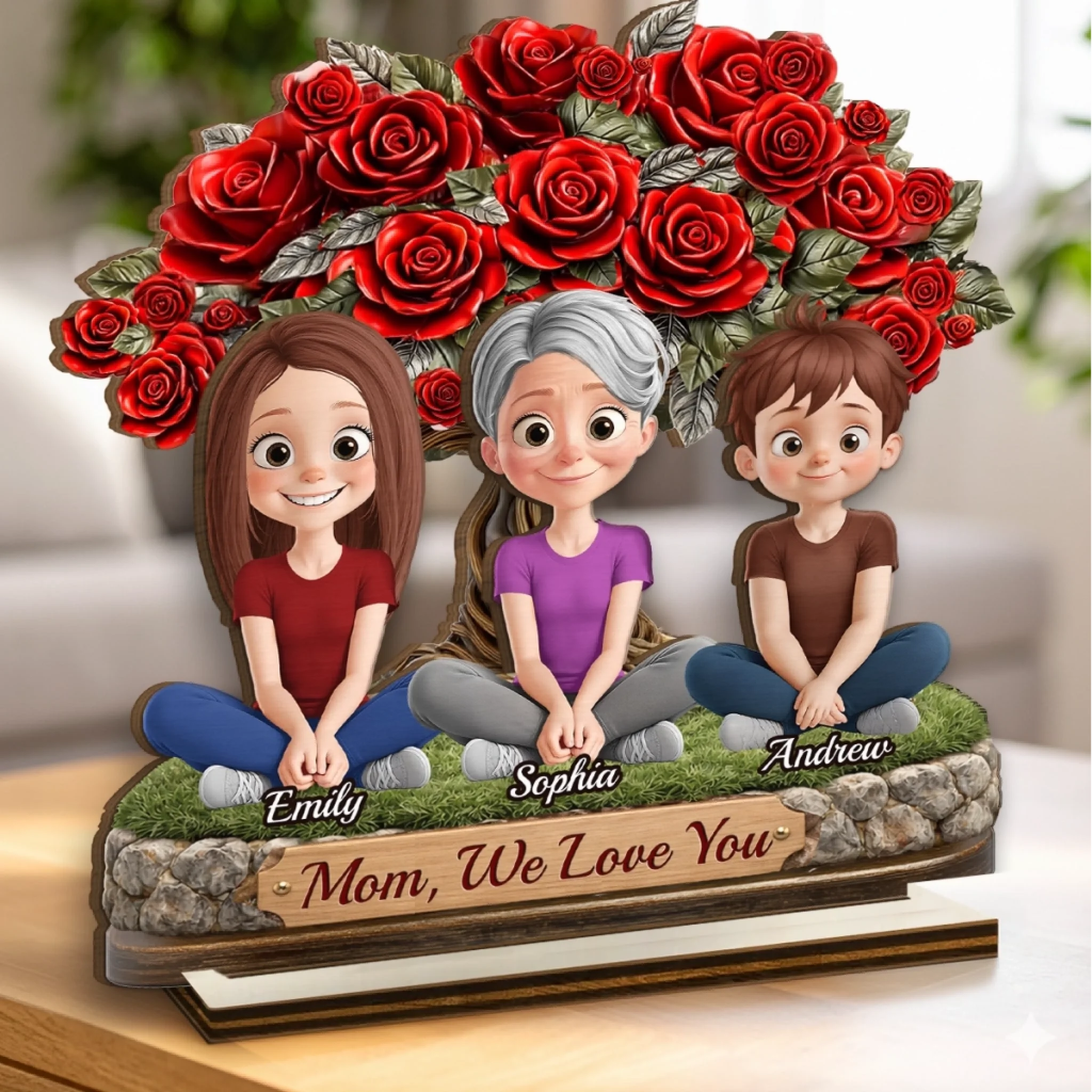 Custom 2-Layered Wooden Plaque - Personalized Mother's Day Birthday Gifts For Mom - Roses For Our Queen