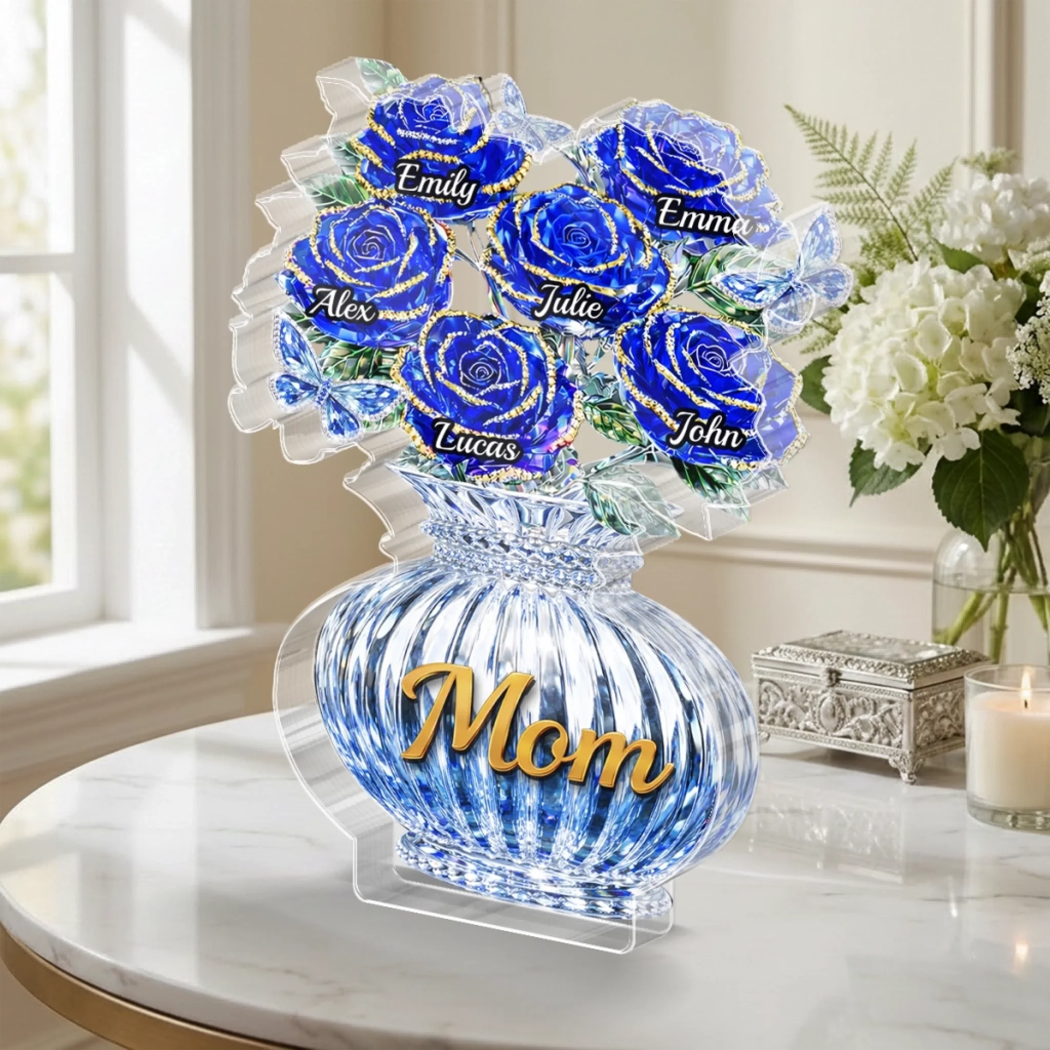 Custom Acrylic Plaque - Personalized Mother's Day Birthday Gifts For Mom, Grandma - Love Shines In Blue
