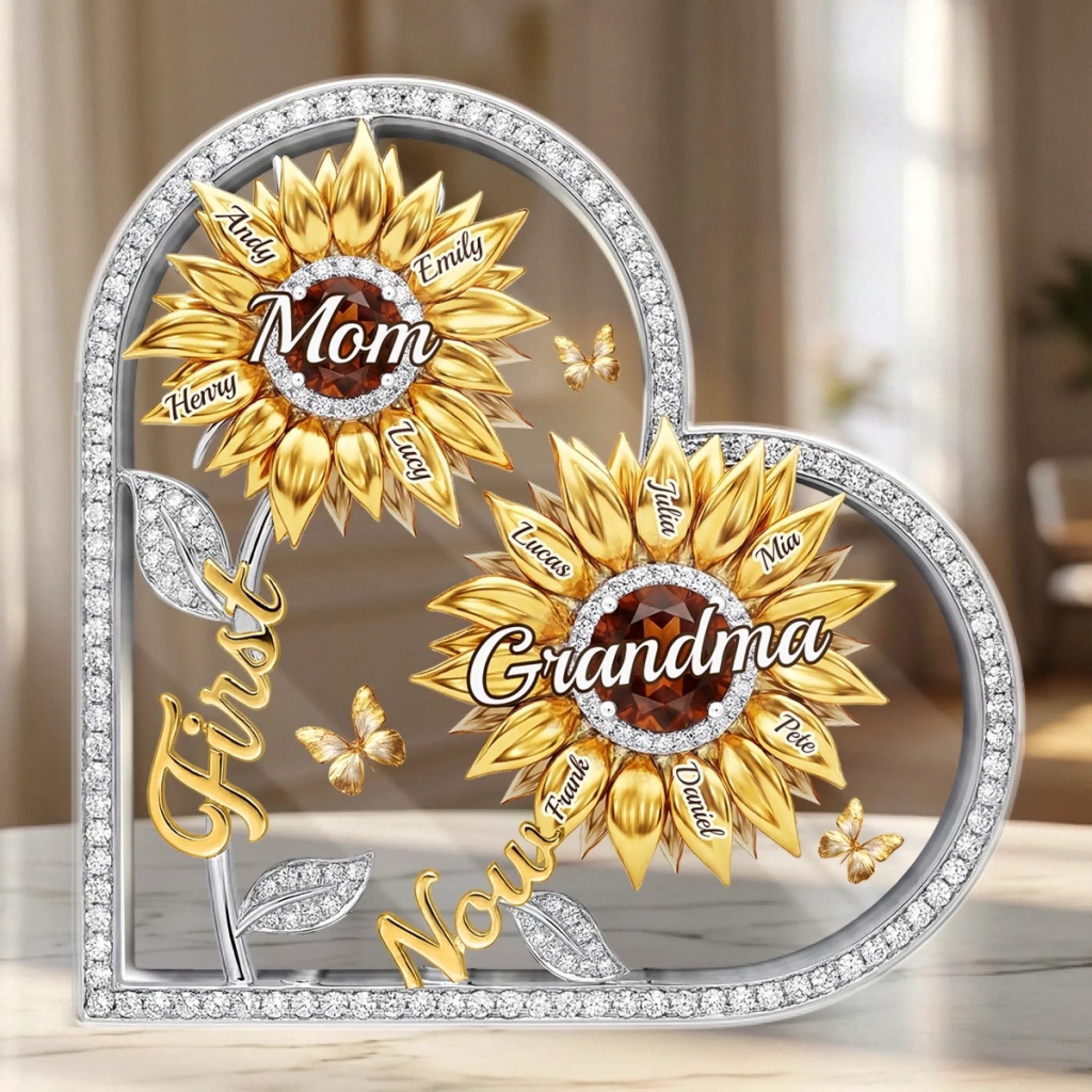Custom Sunflower Acrylic Plaque - Personalized Mother's Day Birthday Gifts For Mom, Grandma - Forever Our Sunshine