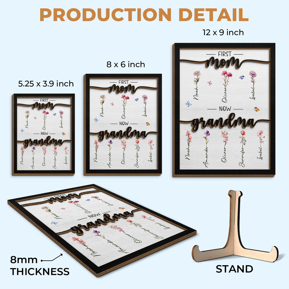 First Mom Now Grandma - Family Personalized Custom 2-Layered Wooden Plaque With Stand - House Warming Gift For Mom, Grandma