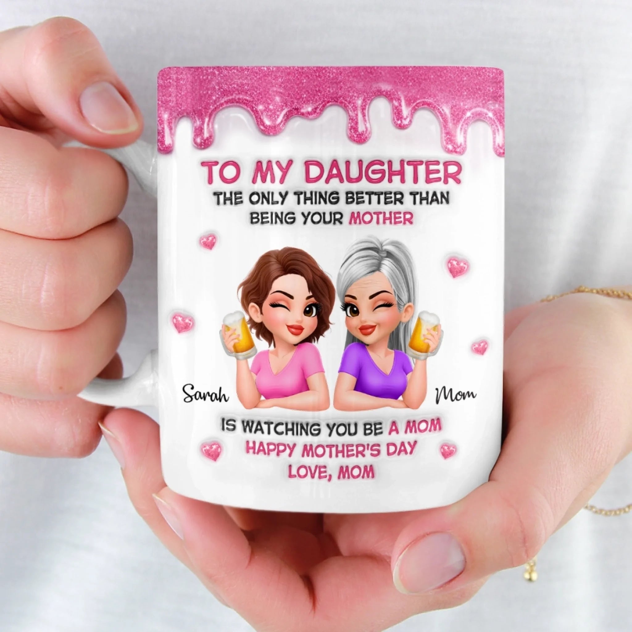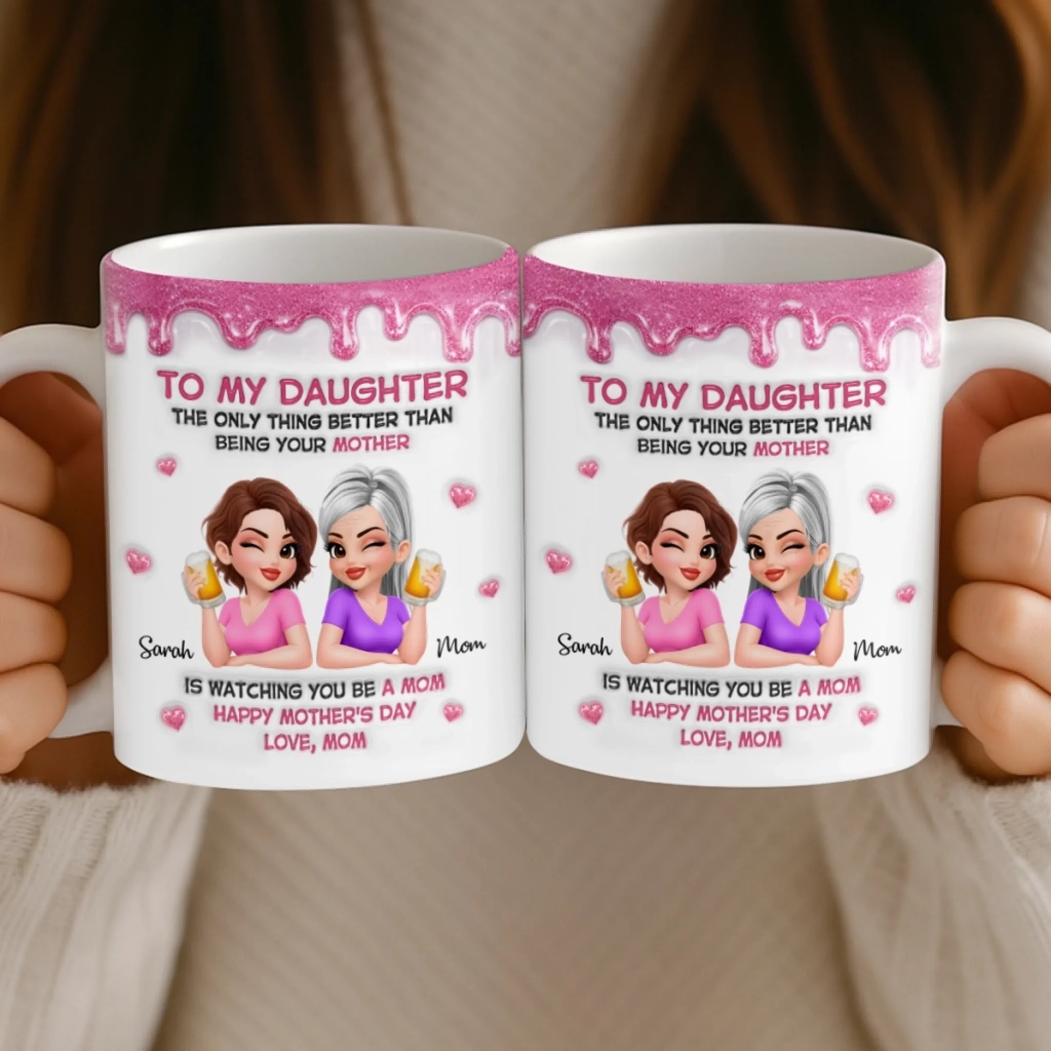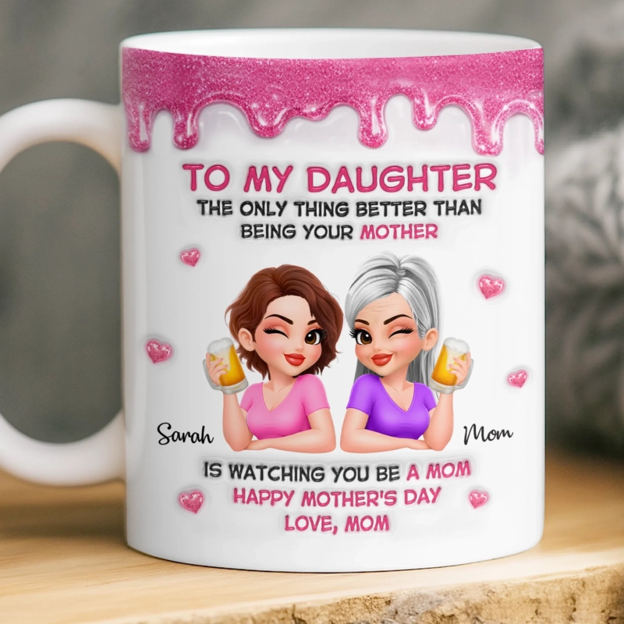 Custom 3D Inflated Effect Printed Mug - Personalized Mother's Day Gifts For Mom, Daughter - Mom And Daughter Forever Bonded