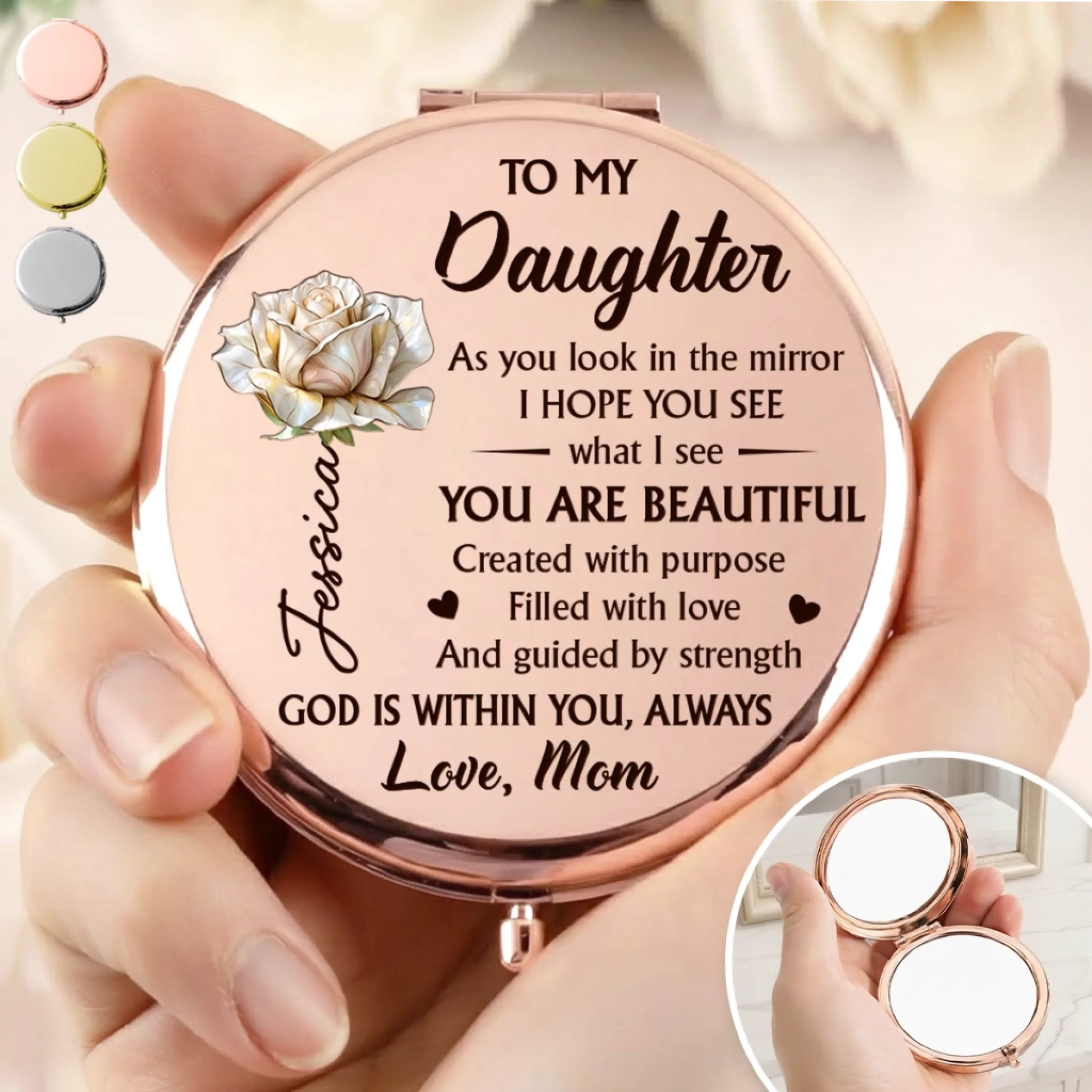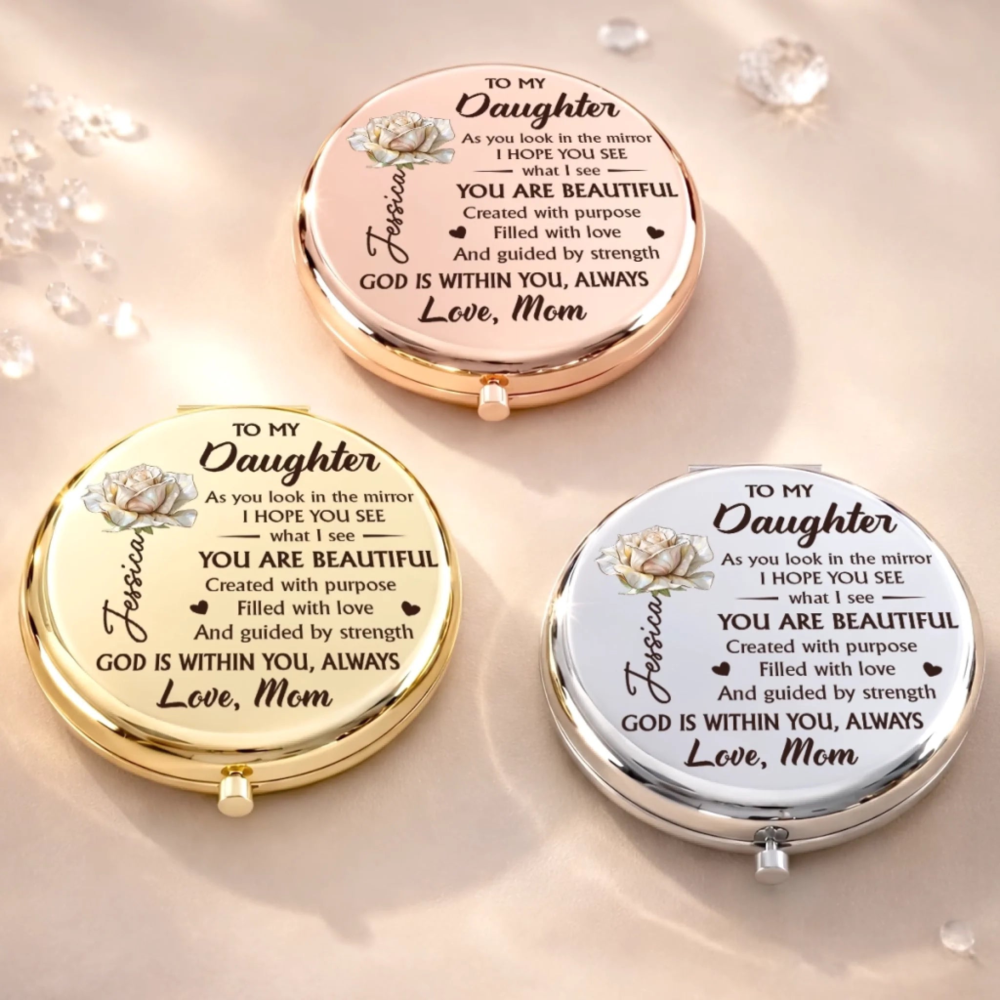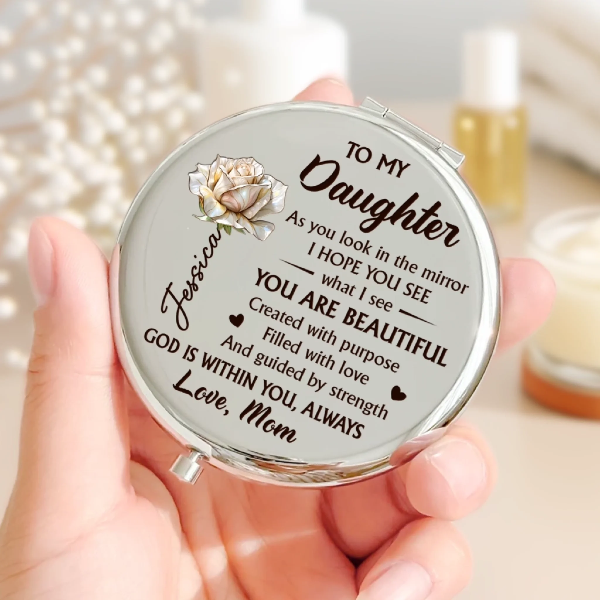 Custom Compact Mirror - Personalized Birthday Gifts For Daughter, Granddaughter - Daughter Love Feels Like Home