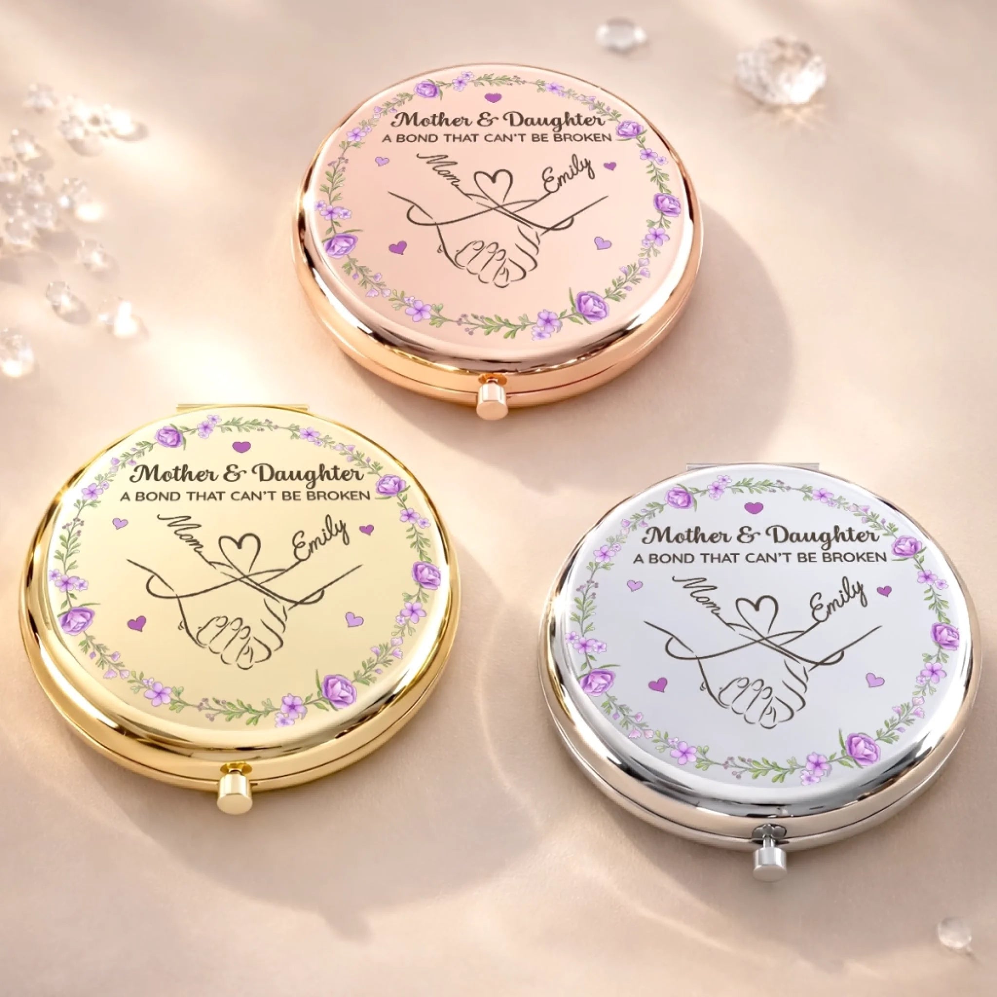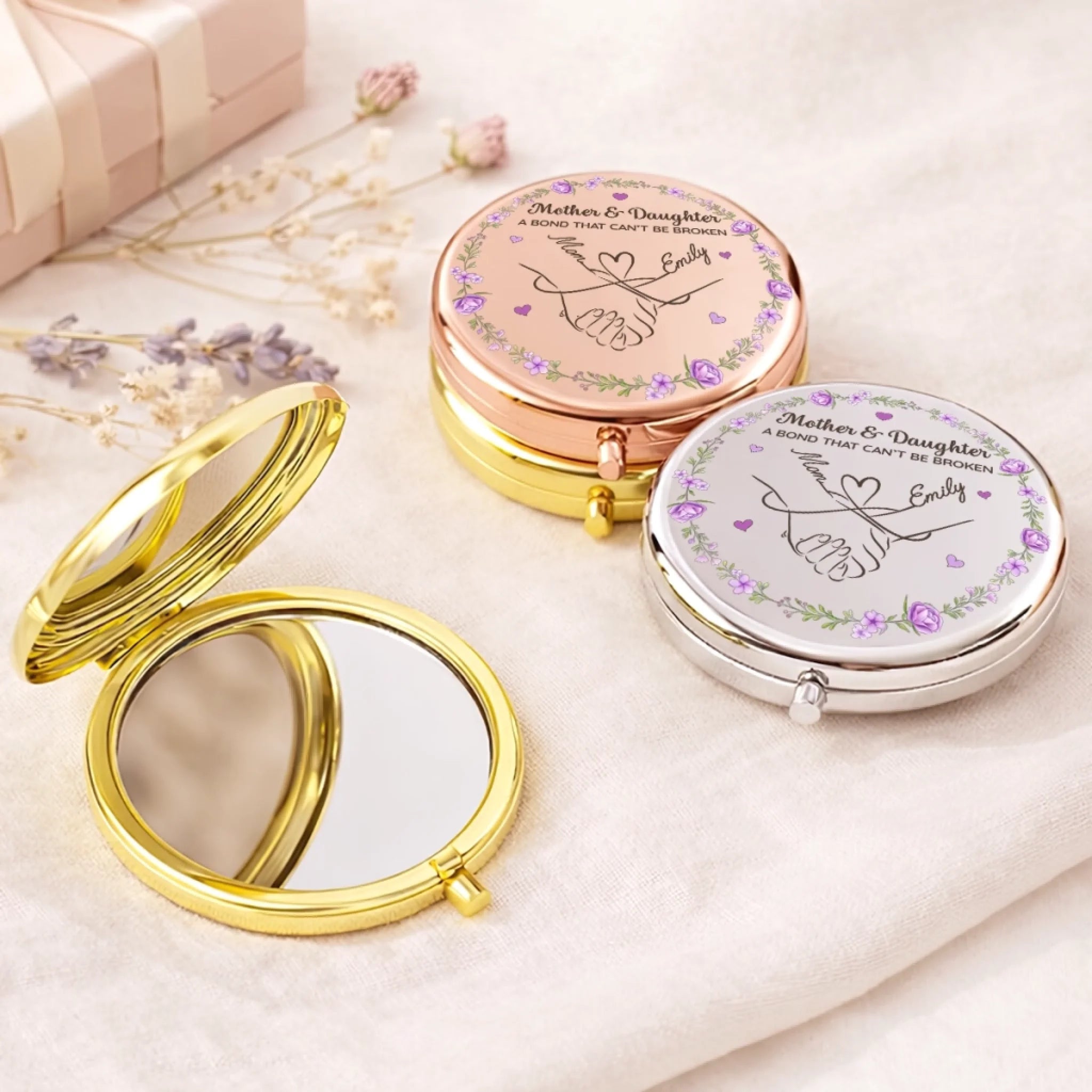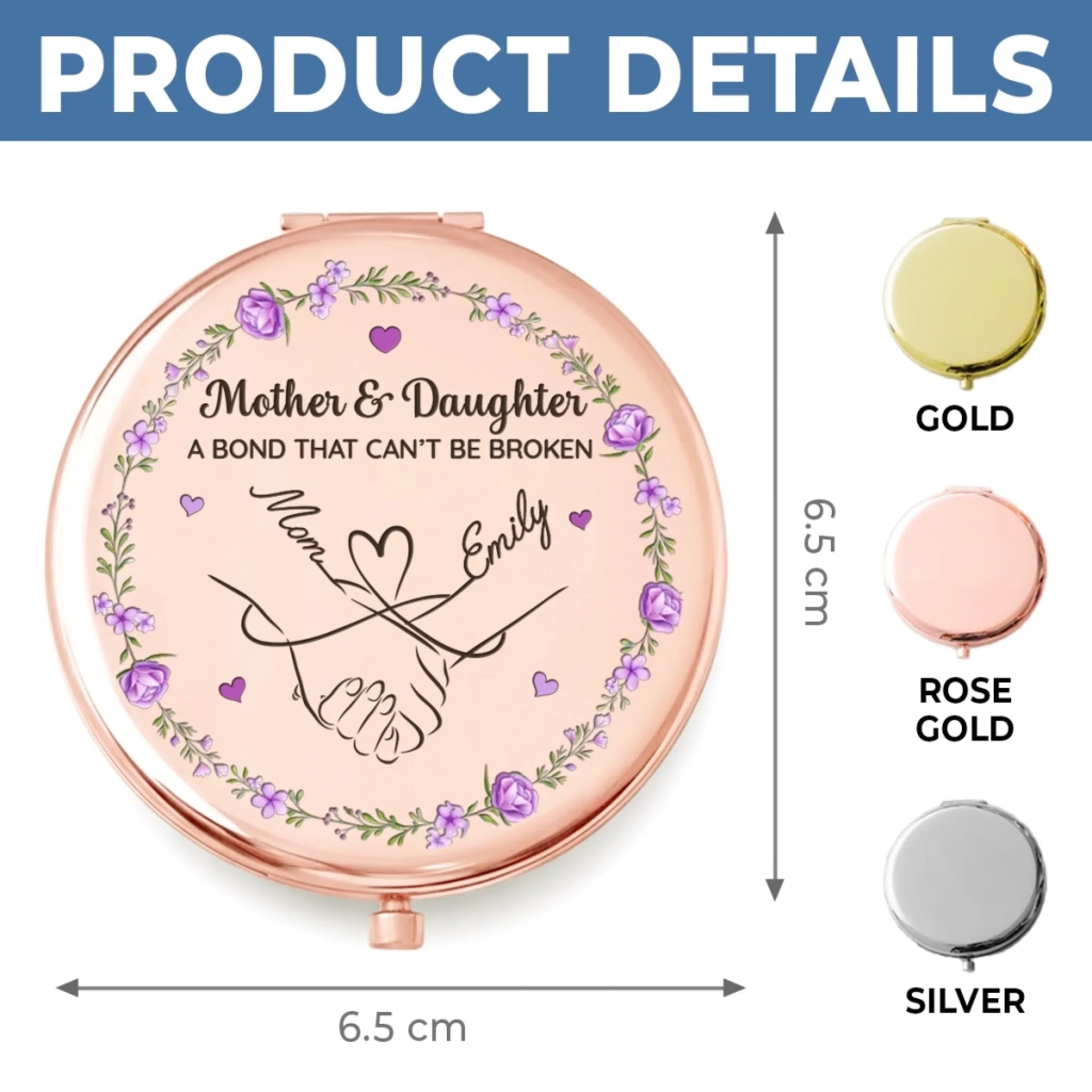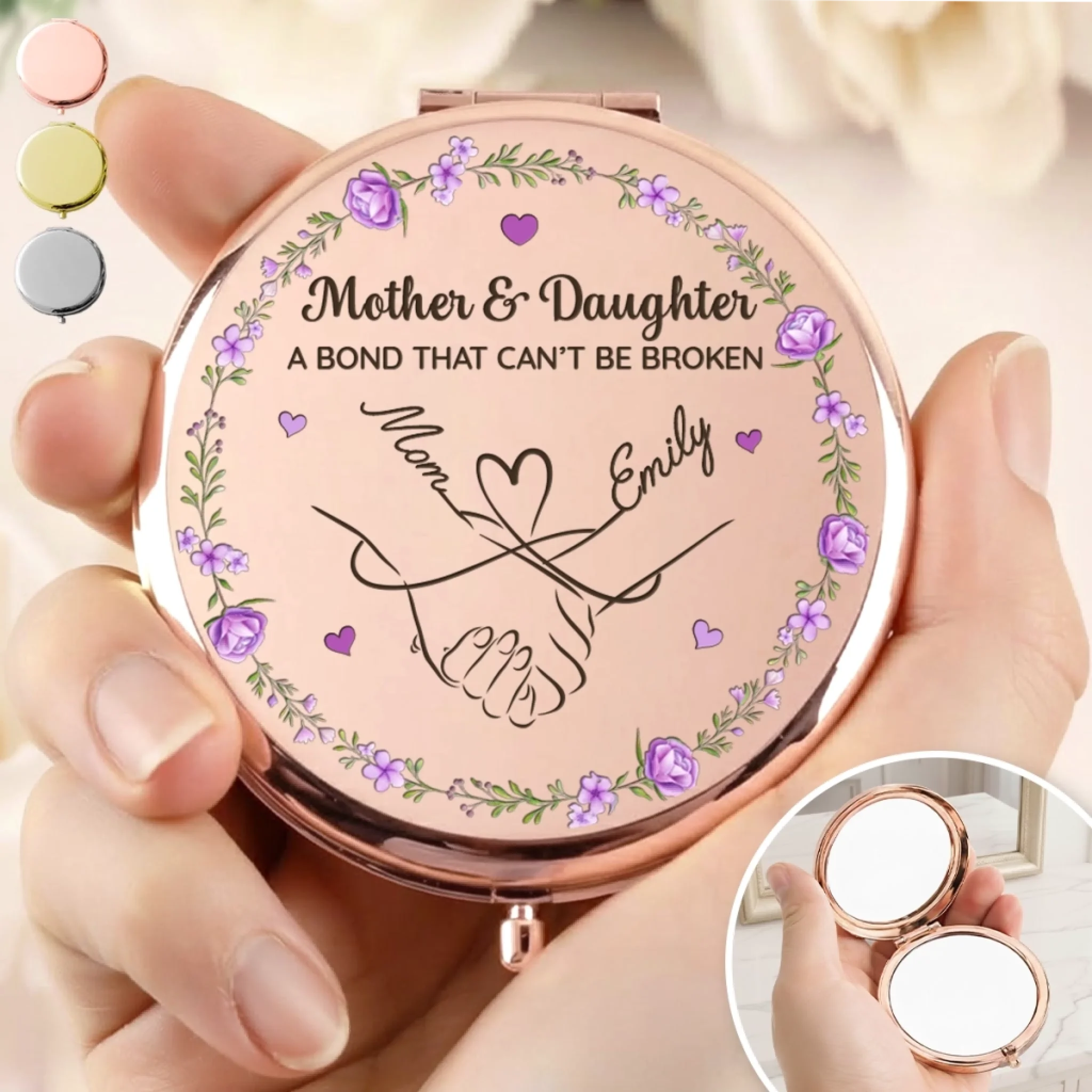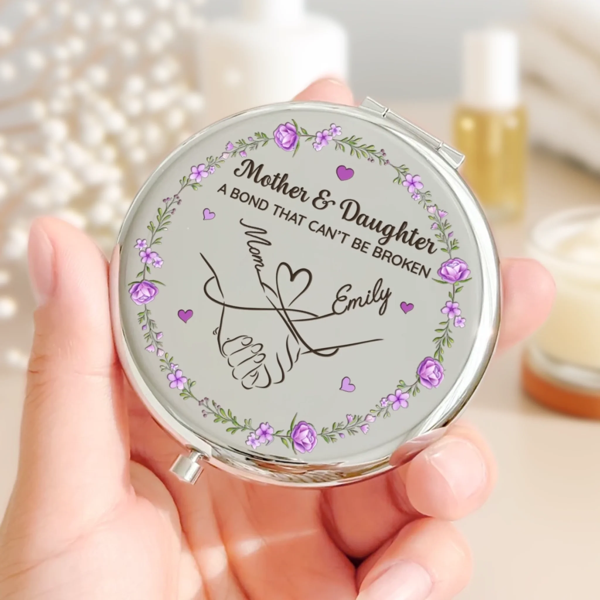 Custom Compact Mirror - Personalized Birthday Gifts For Mom, Daughter - Forever Connected By Love, Always