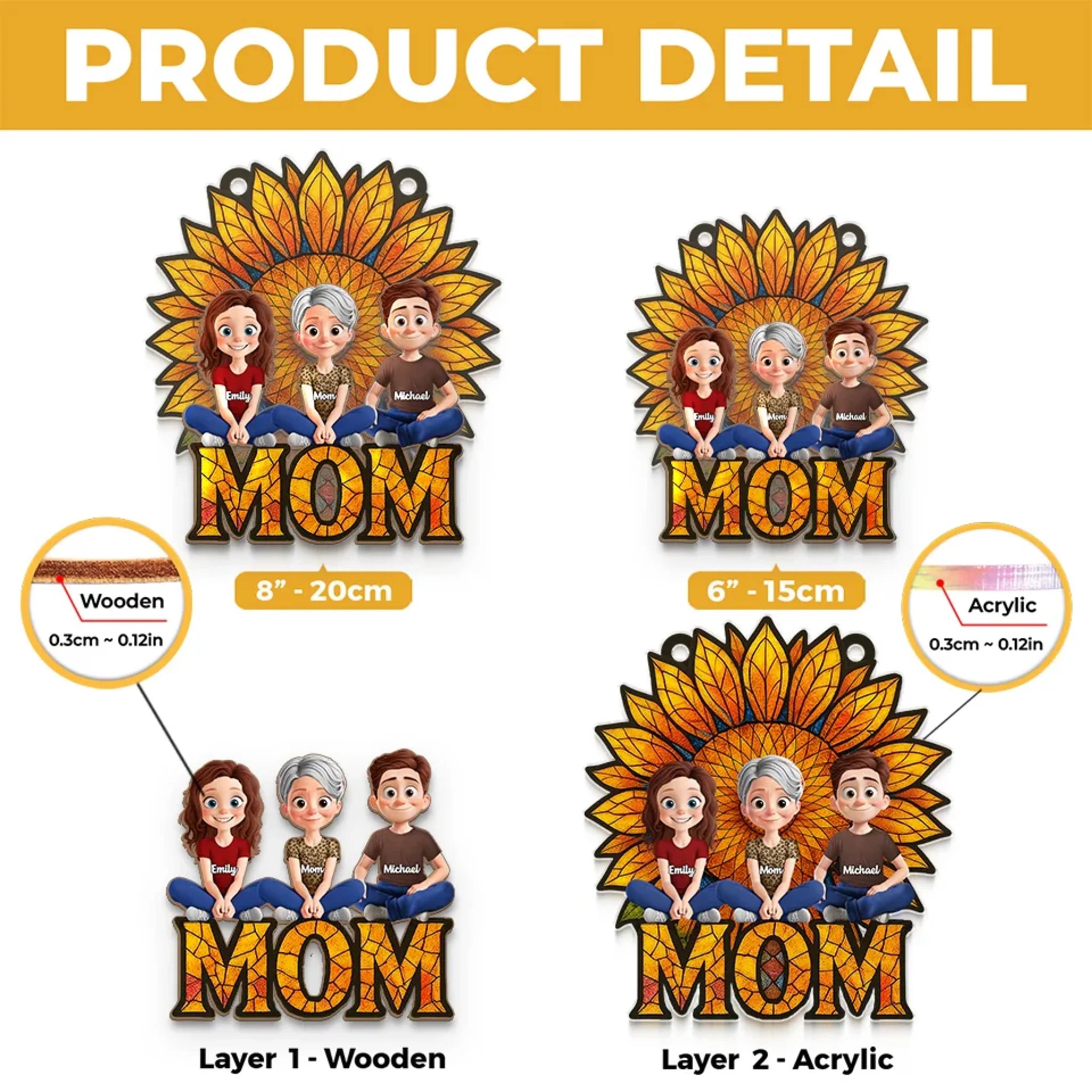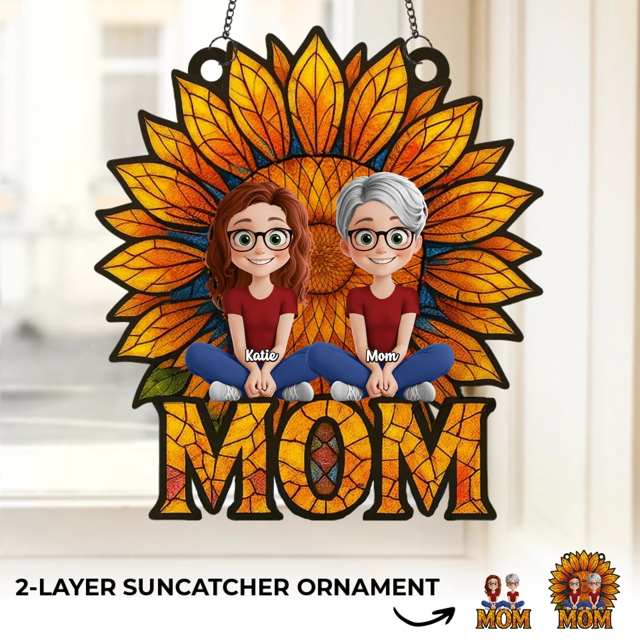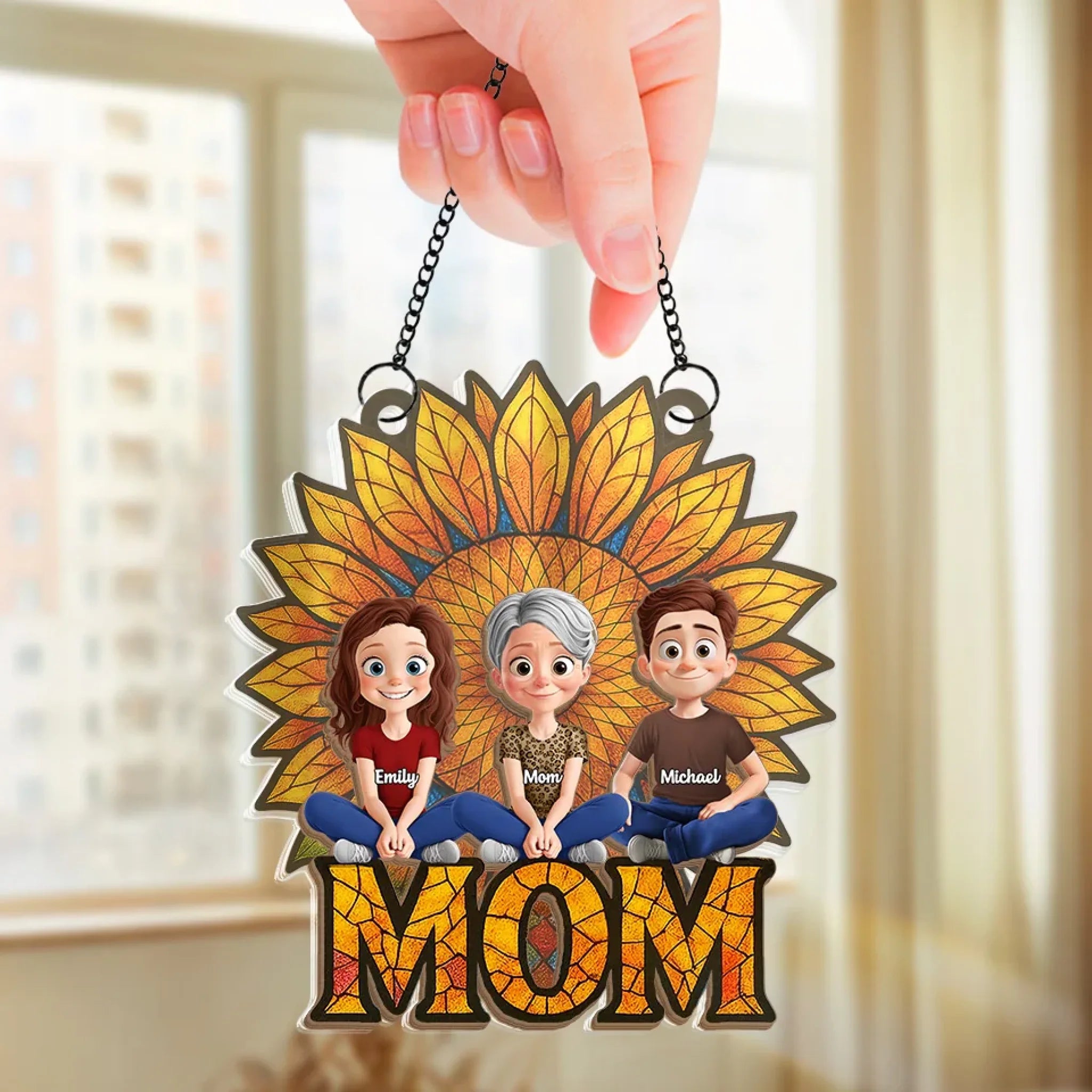 Elle est le soleil qui nous unit - Ornement attrape-soleil personnalisé à suspendre à la fenêtre de la famille - Fête des Mères, cadeau pour maman, grand-mère