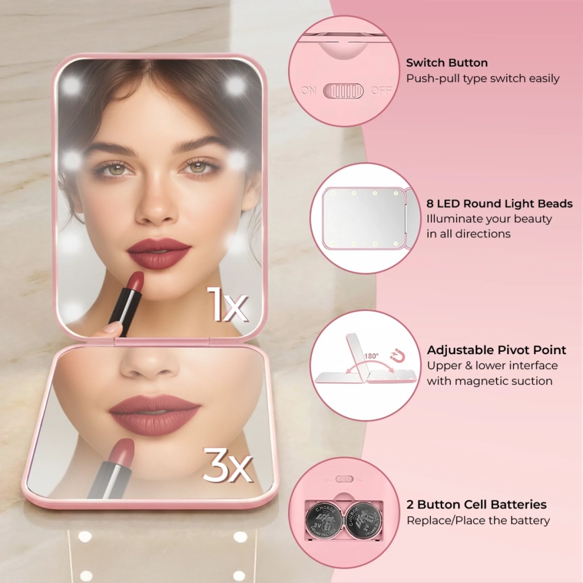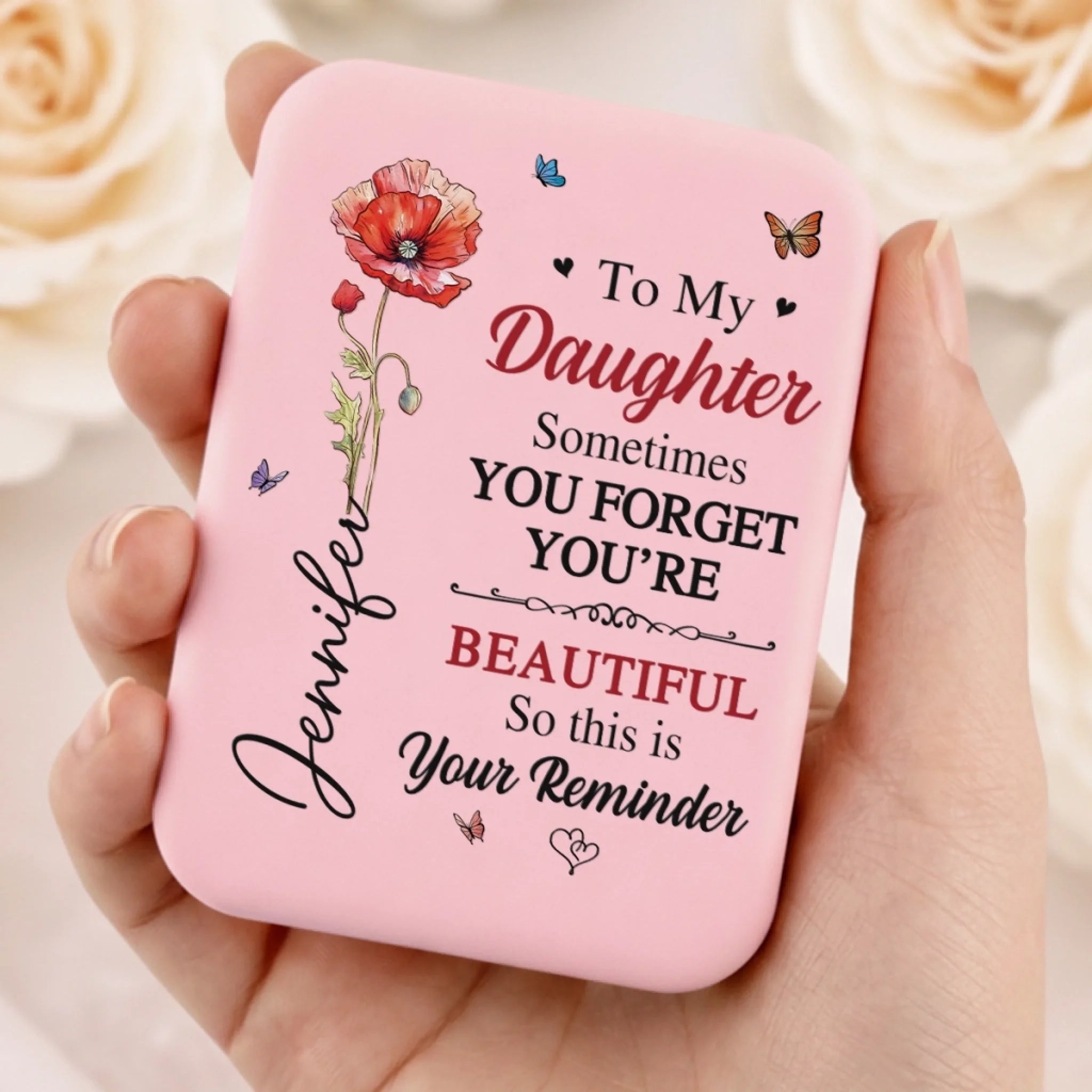 This LED compact makeup mirror is a stylish and practical accessory designed for everyday beauty routines. Compact enough to fit easily in a handbag or travel pouch, it’s a thoughtful piece that combines function with a warm, meaningful design. This is the perfect gift for anyone, suitable for all occasions: birthdays, holidays, anniversaries, graduations, Valentine's Day, Mother's Day, Father's Day, and just because! Whether for friends, family, or that special someone, this versatile gift is guaranteed to bring joy and make lasting memories.