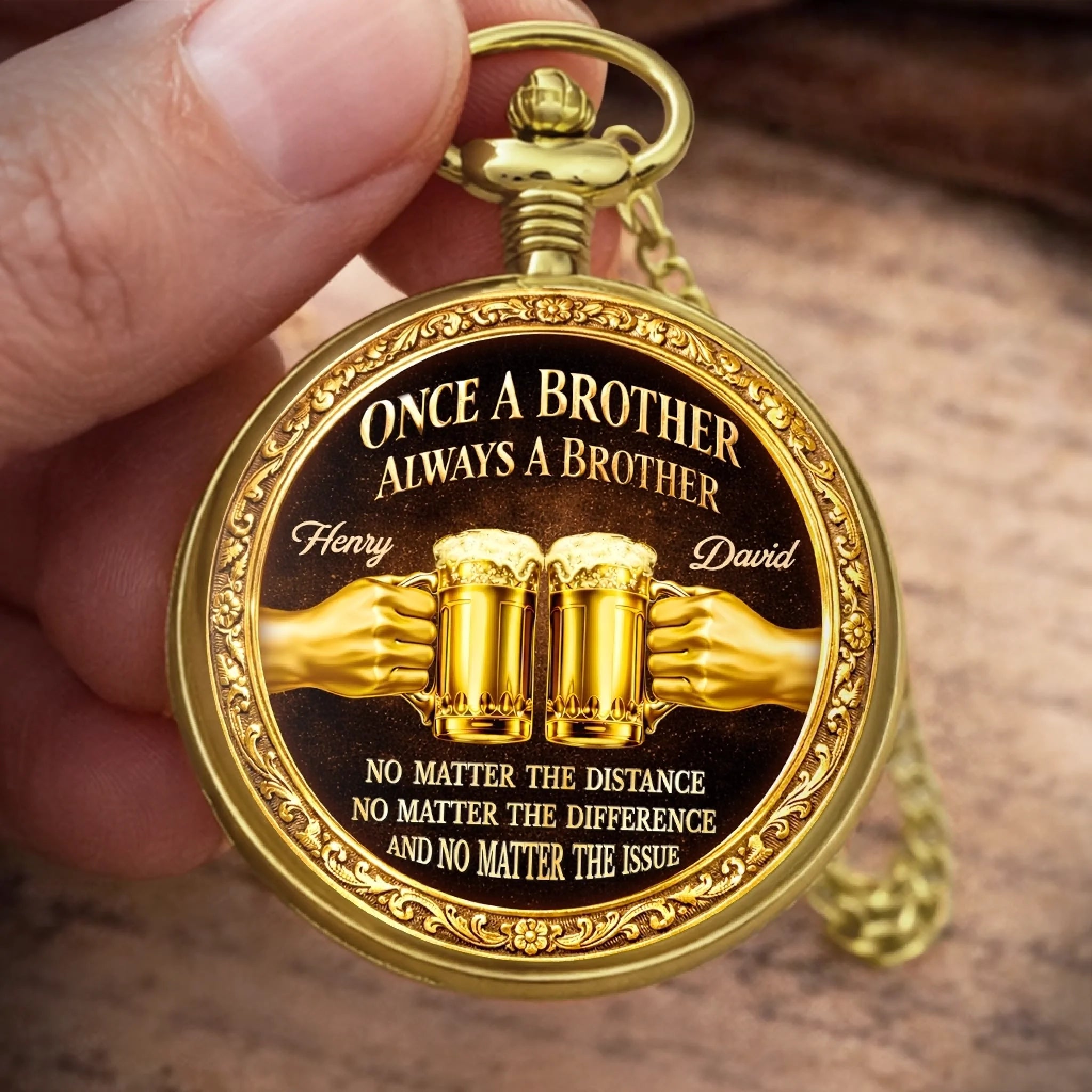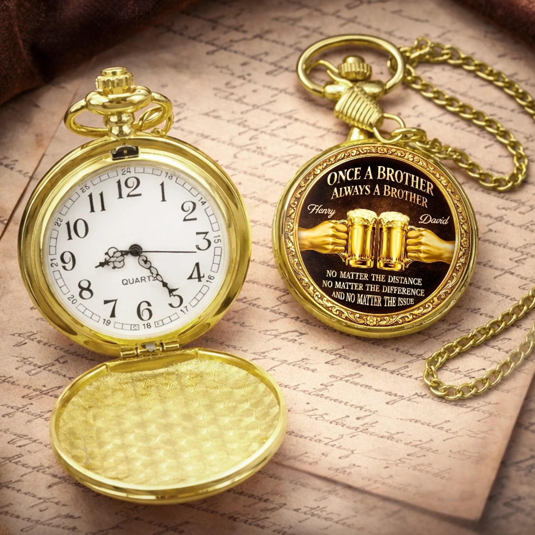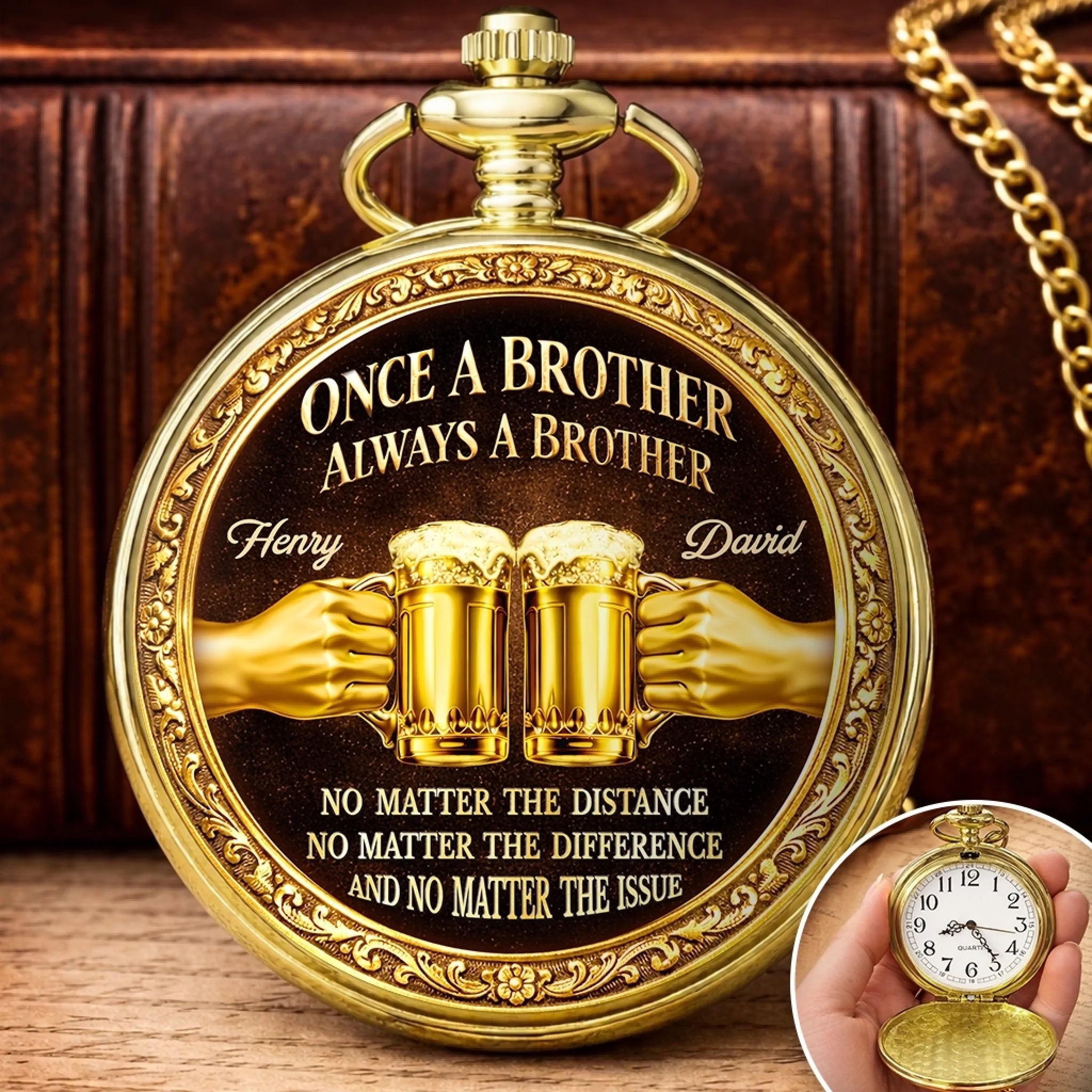Custom Pocket Watch - Personalized Birthday Gifts For Brother - True Brotherhood Never Ends