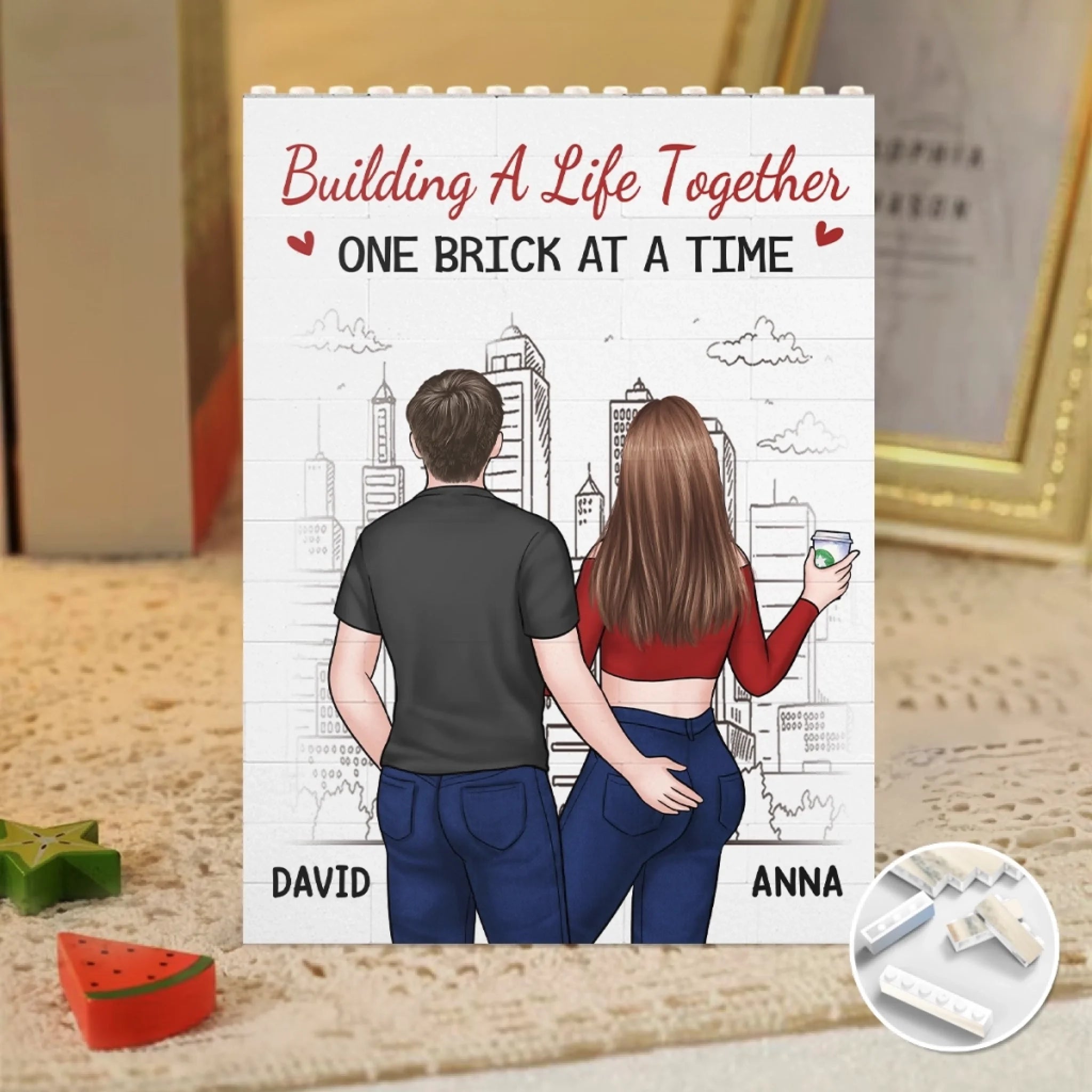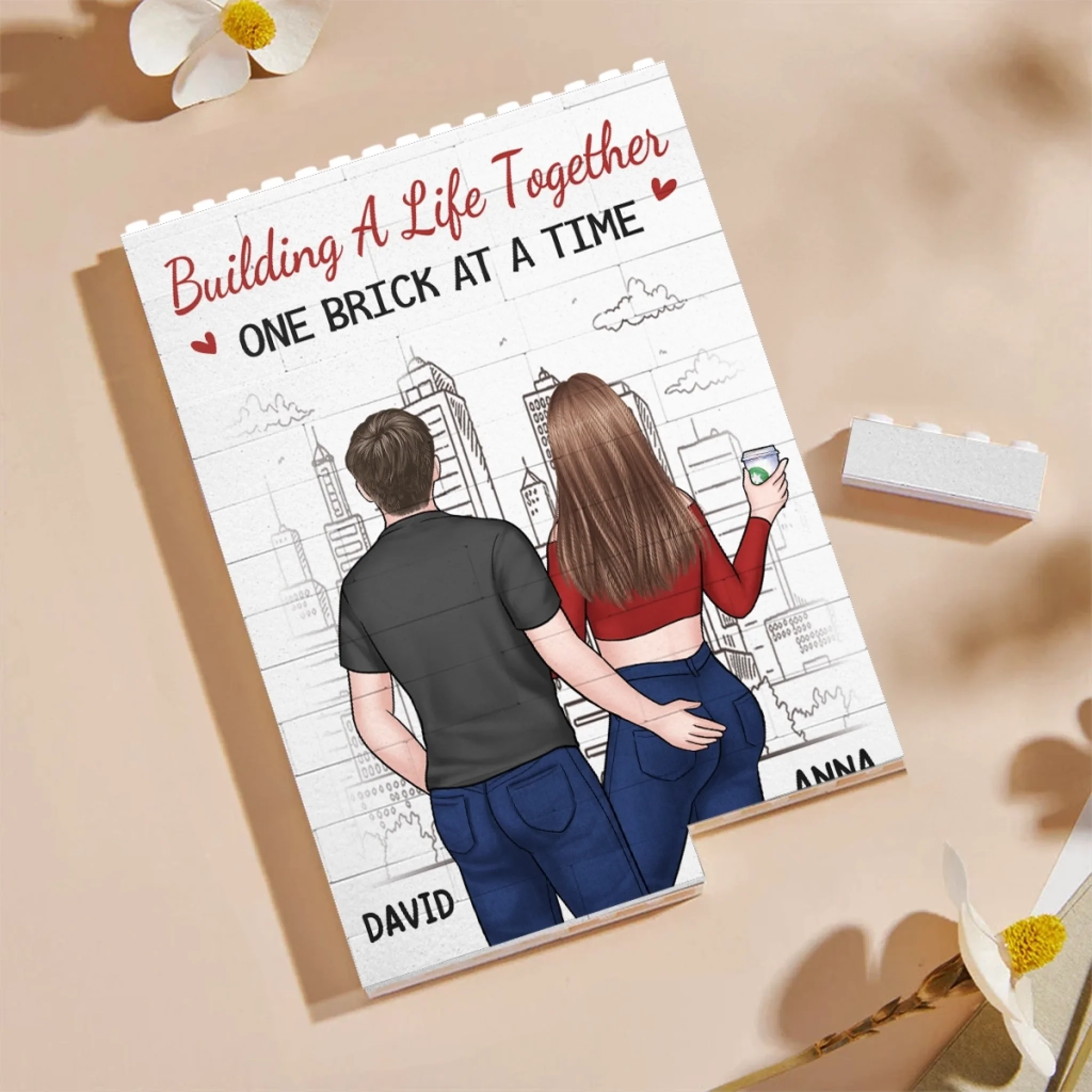 Custom Vertical Rectangle Shaped Building Brick Blocks - Personalized Anniversary Wedding Gifts For Husband And Wife, Him And Her - Love Lives In Our Steps