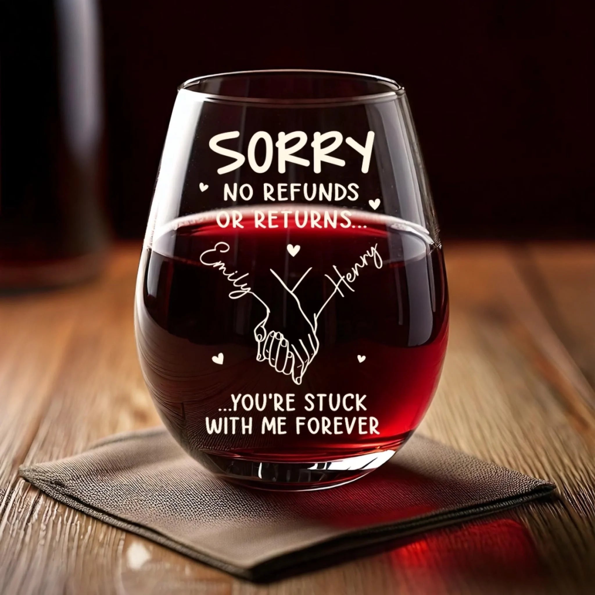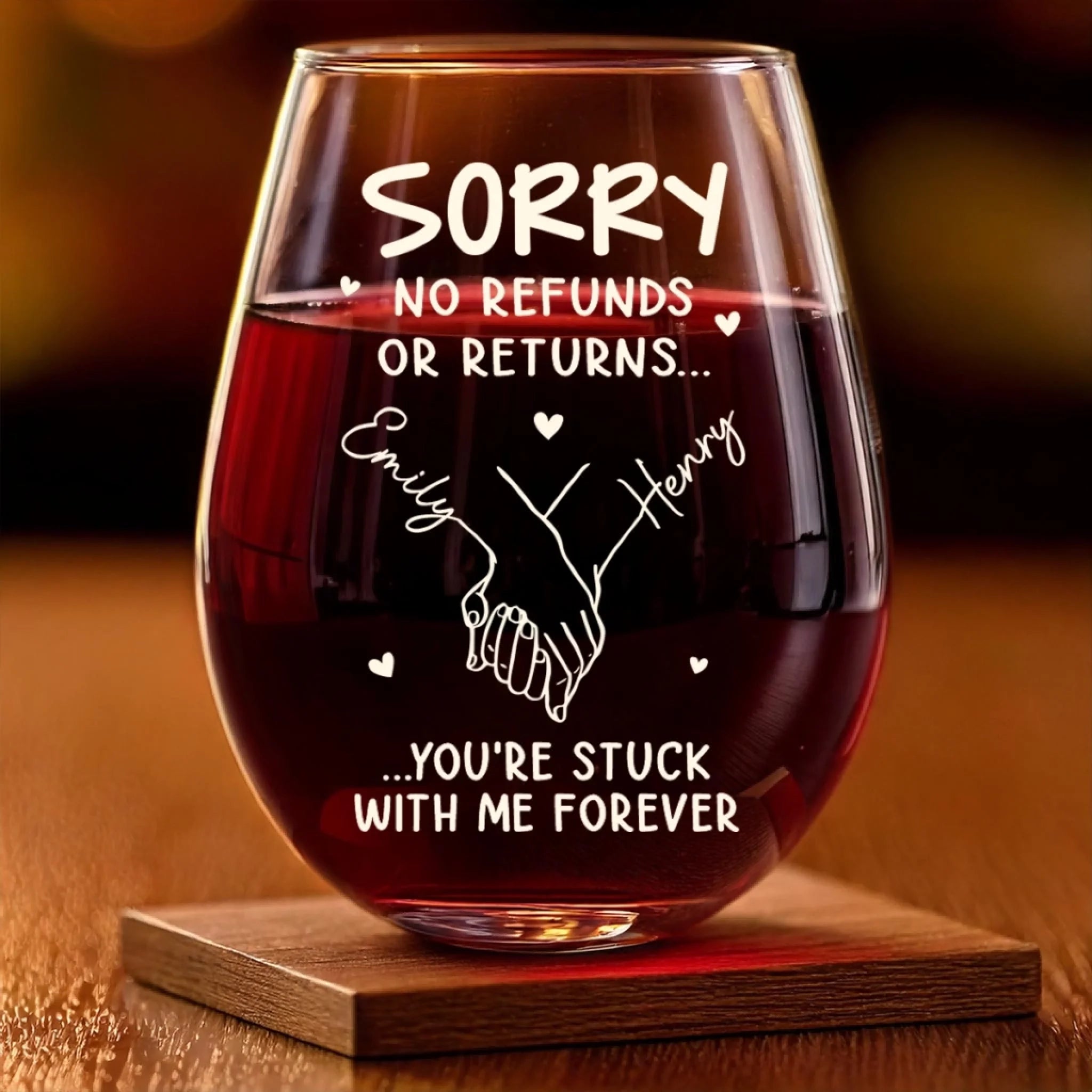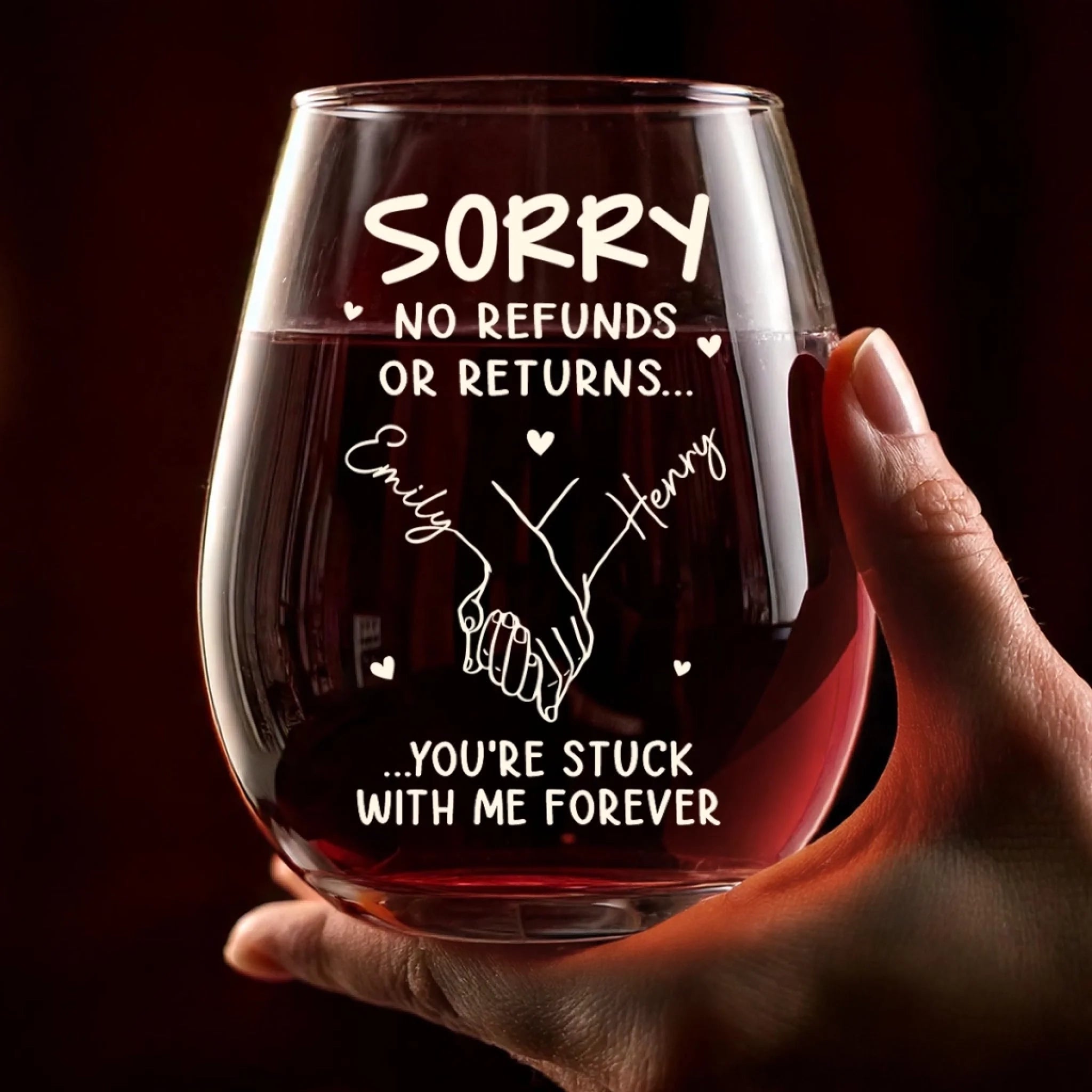 Custom Wine Glass - Personalized Anniversary Wedding Gifts For Husband And Wife, Him And Her - Stuck With Me Forever