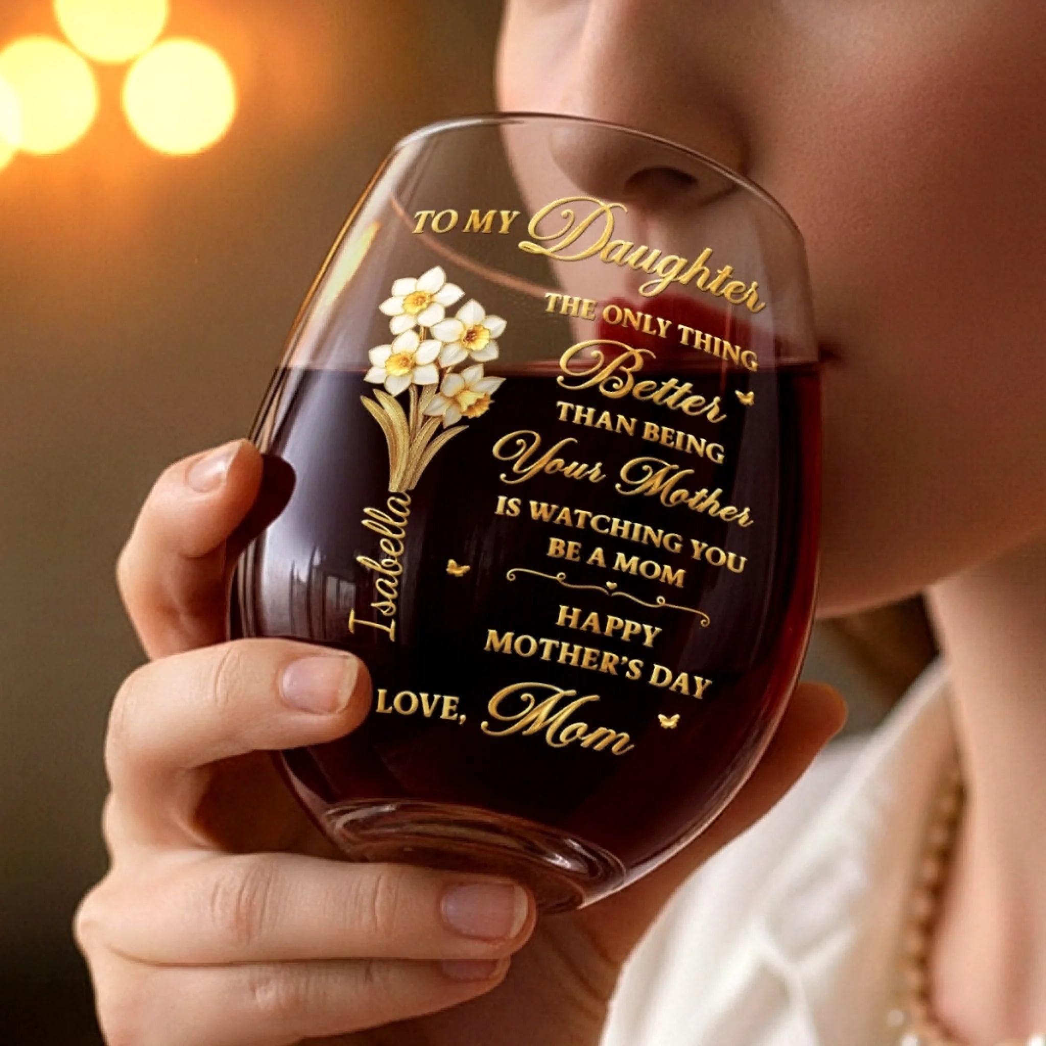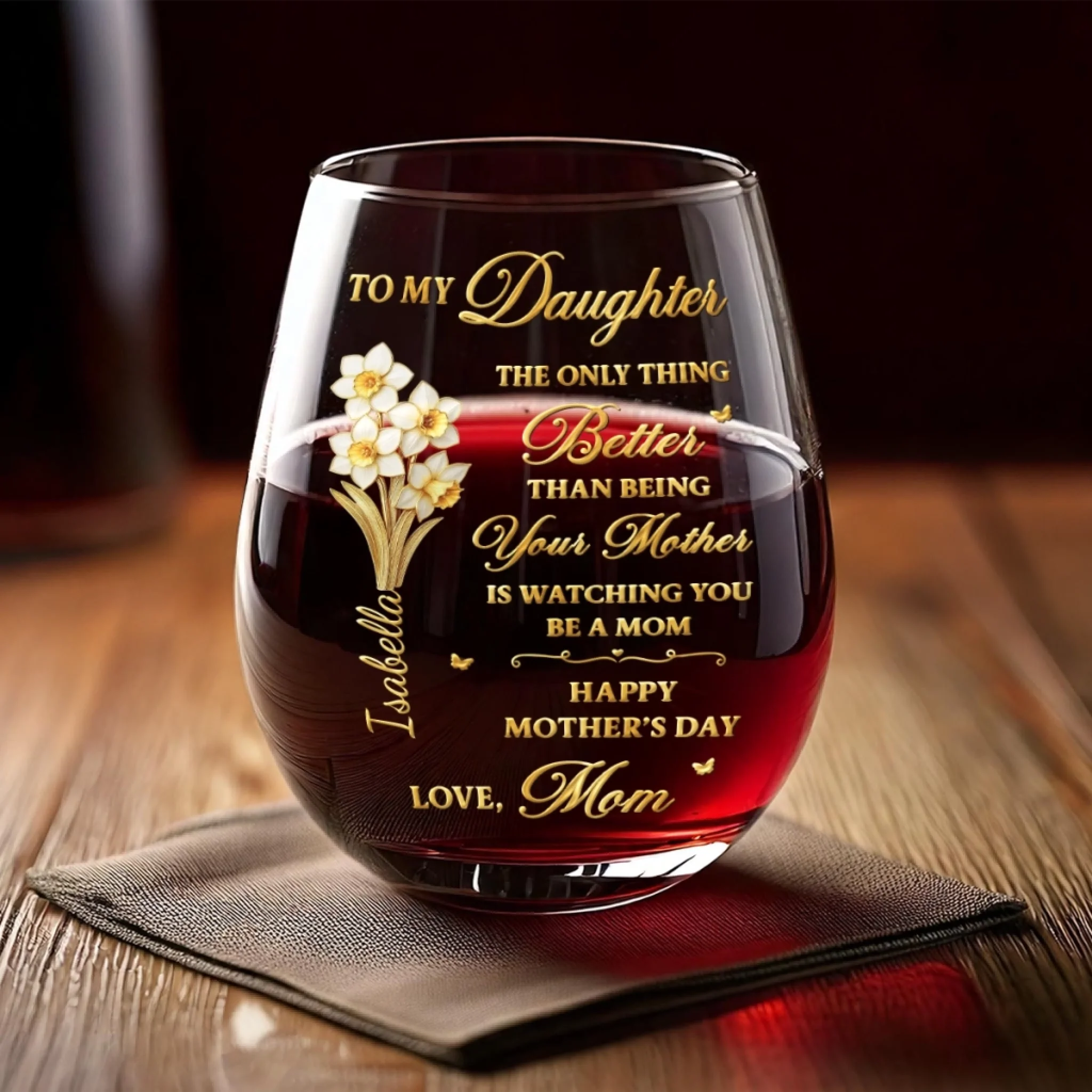 Custom Wine Glass - Personalized Mother's Day Birthday Gifts For Daughter - A Mother’s Proud Moment