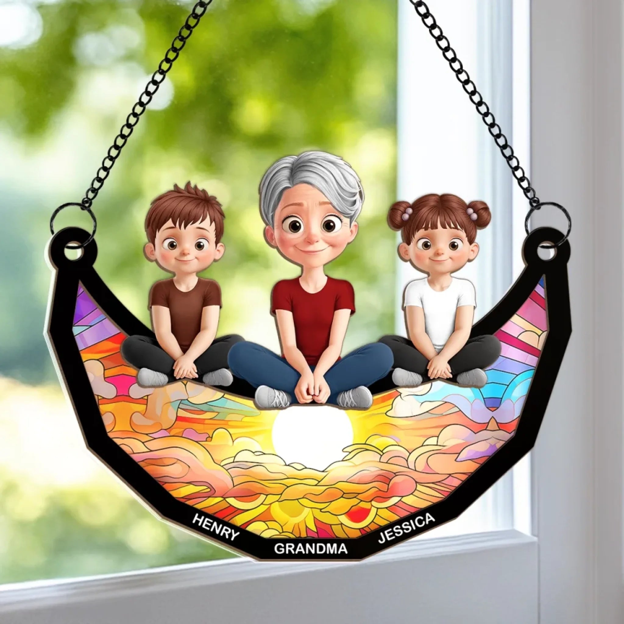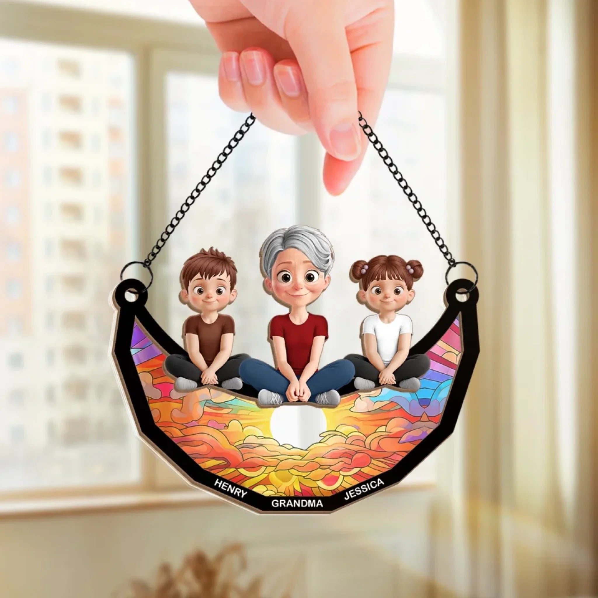 Grandma’s Heart Holds All The Love - Family Personalized Window Hanging Suncatcher Ornament - Mother's Day, Gift For Mom, Grandma